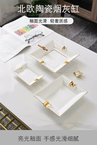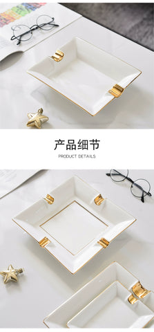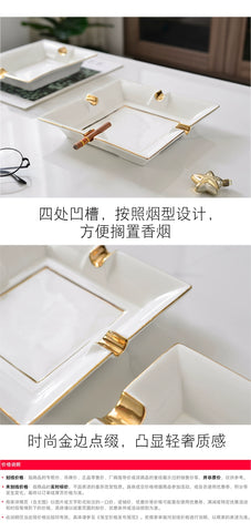 American bone china gold painted ashtray ceramic design household cigar creative luxury decoration
