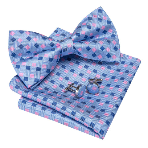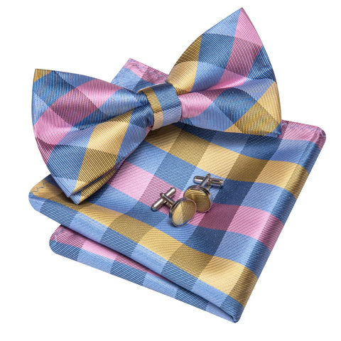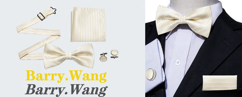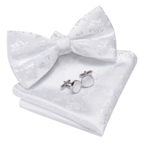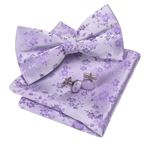 Barry.Wang Geometric Floral Jacquard Mens Bow Tie Hanky Cufflinks Set Pre-Tied Bowtie Gold Red Pink Purple Wedding Business