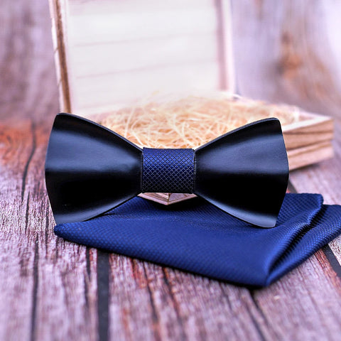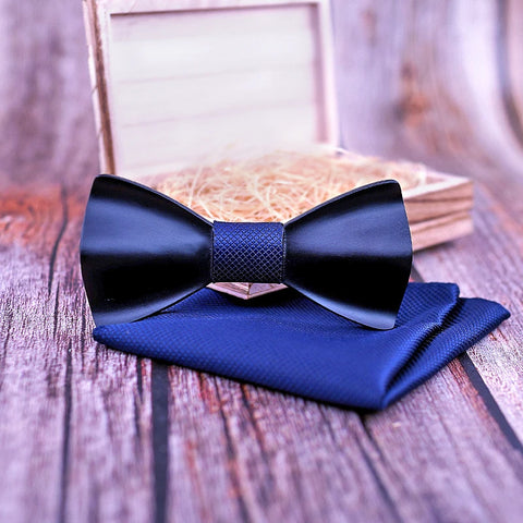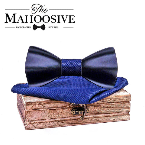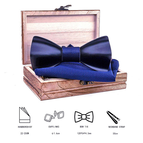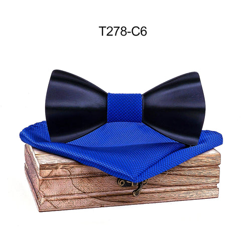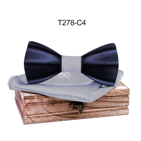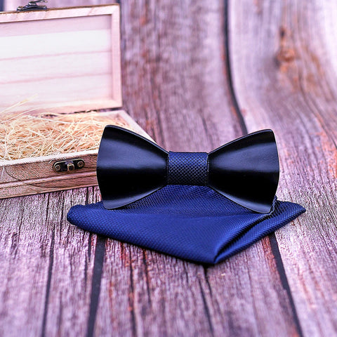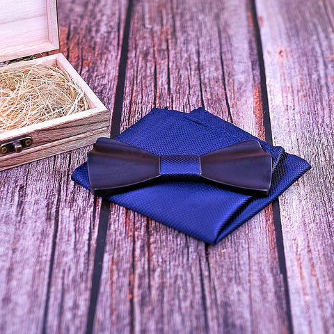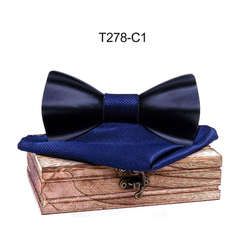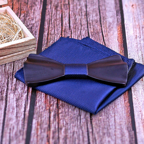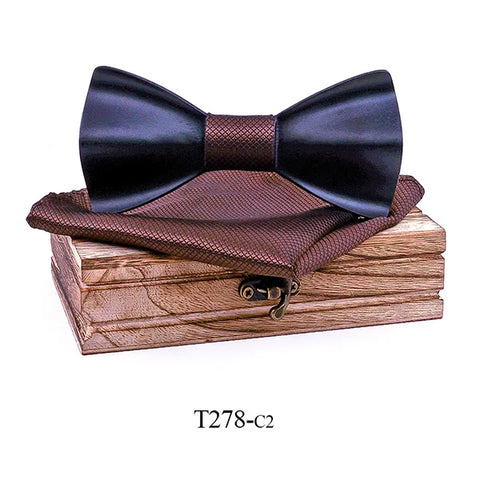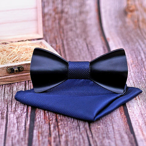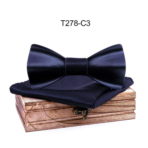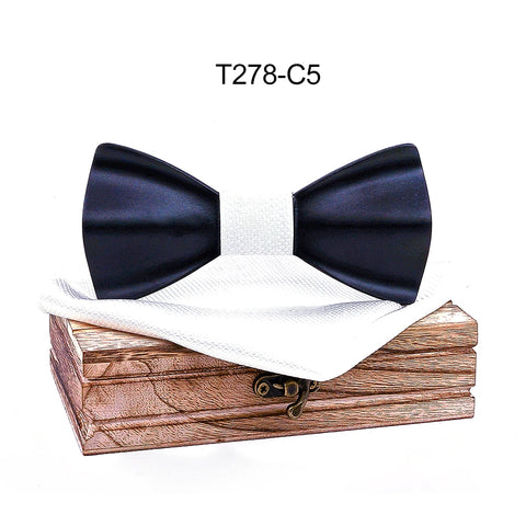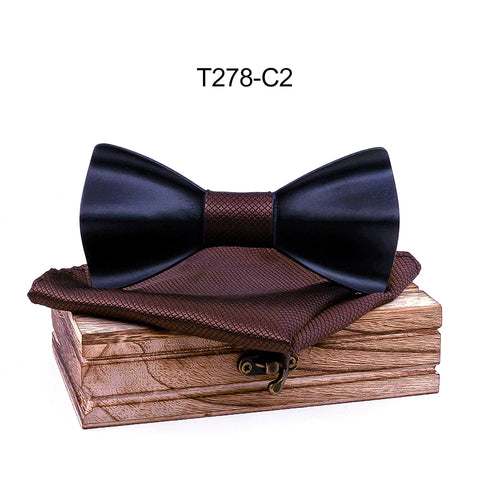 Black Mens Wood Bow tie Handkerchief Sets Marriage Groom Wooden BowTie Bowknots Wedding Party Neck Ties For Men