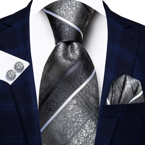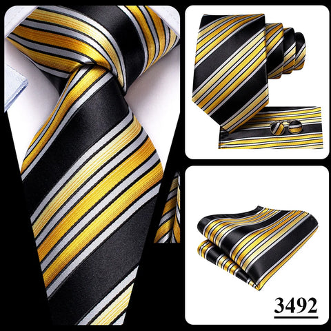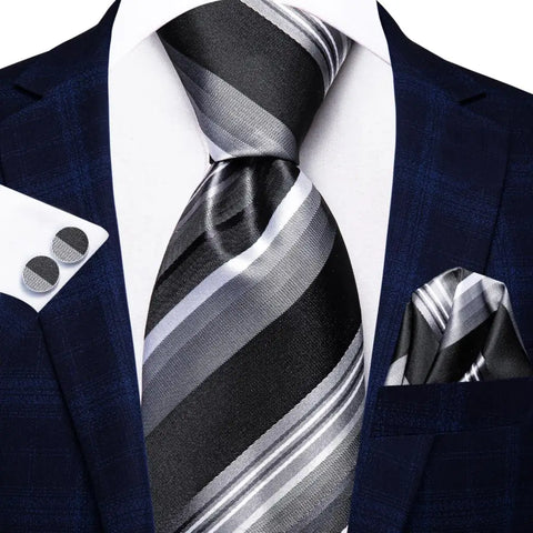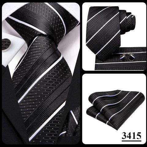 Black Red Striped Silk Wedding Tie For Men Handky Cufflink Gift Men Necktie Fashion Business Party Dropshiping Hi-Tie Designer