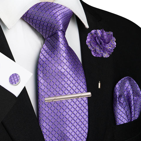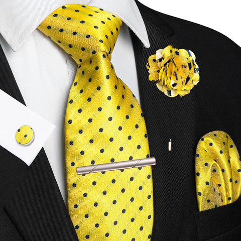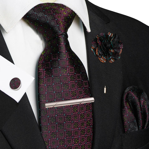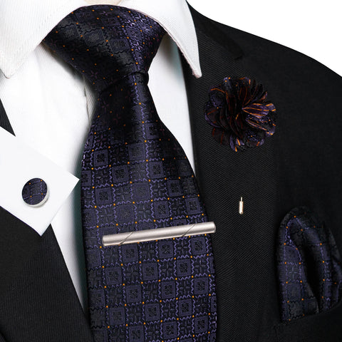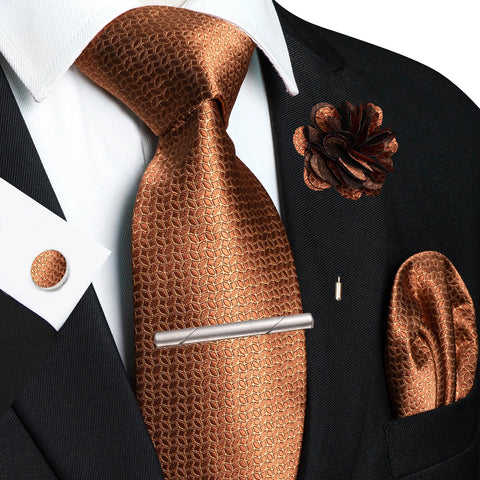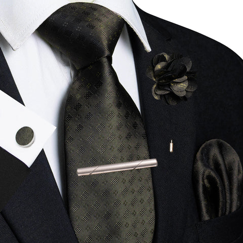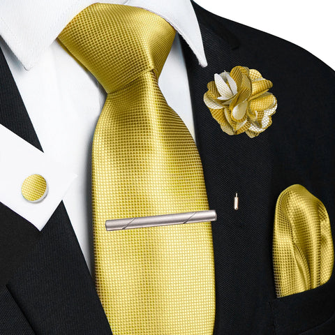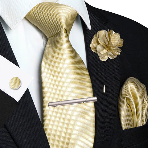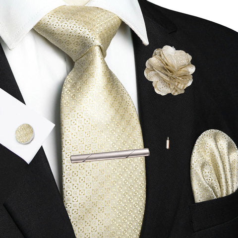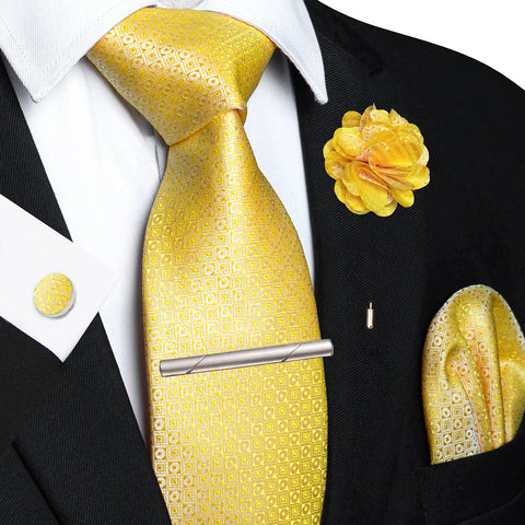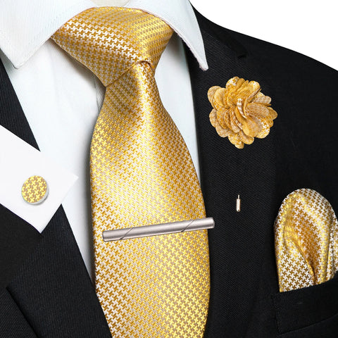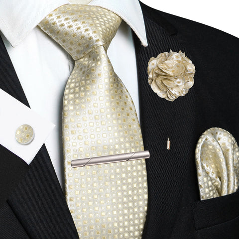 Brown Yellow Plaid Ties For Men Luxury 8cm Silk Tie Pin Pocket Square Cufflinks Tie Clip Set Business Party Wedding Accessories