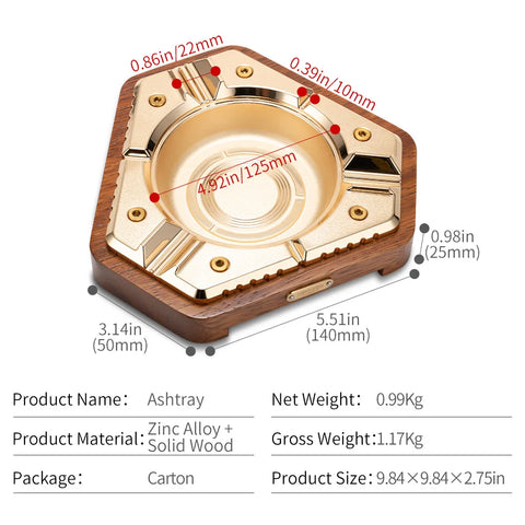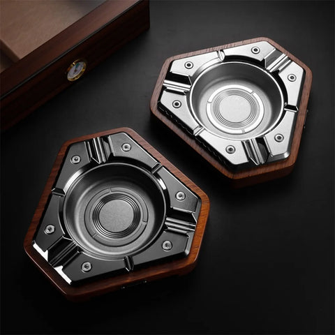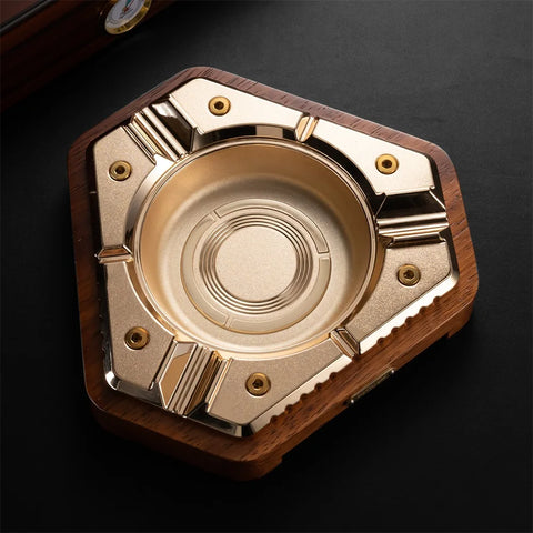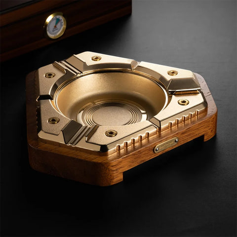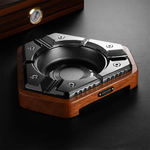 CIGARLOONG Cigar Ashtray Solid Wood Alloy Splicing Large Caliber 3 Smoke Slots Bottom Non-Slip Home Furnishings CL-3033
