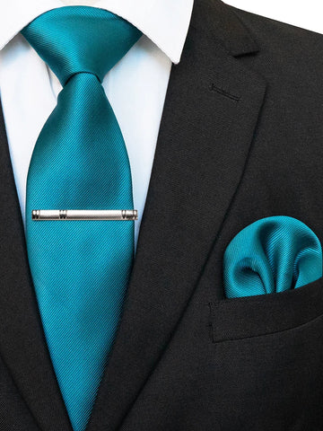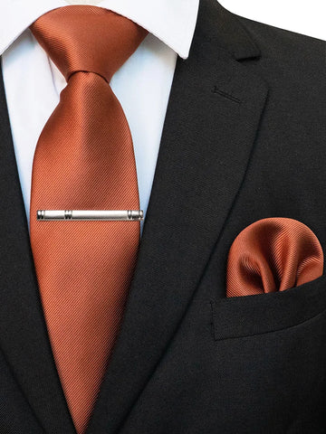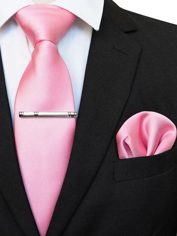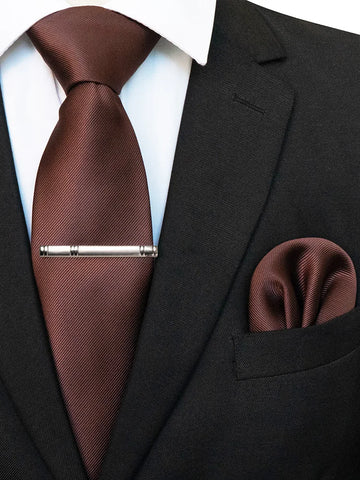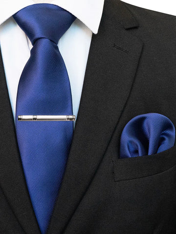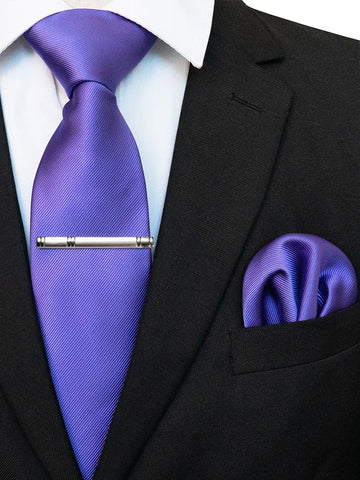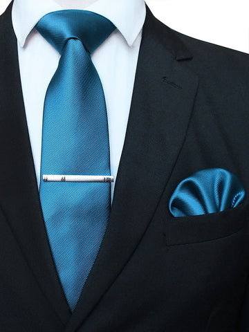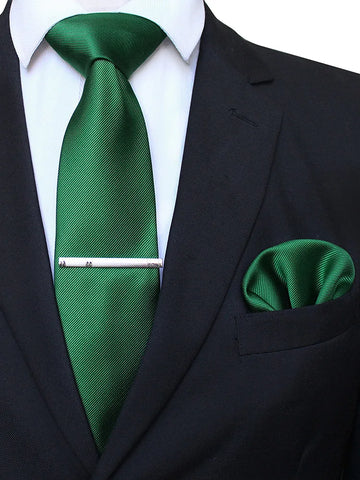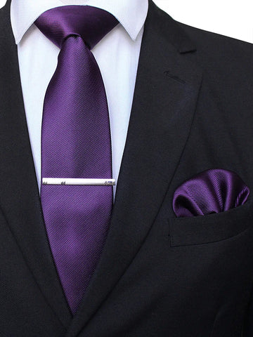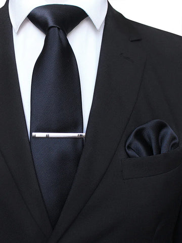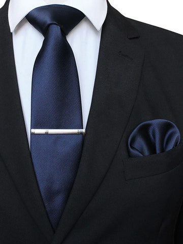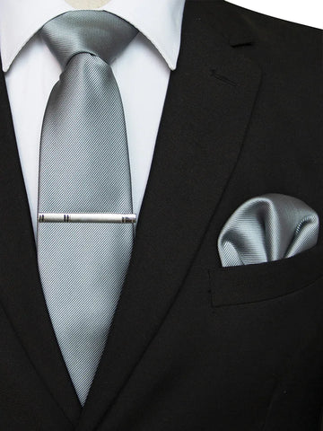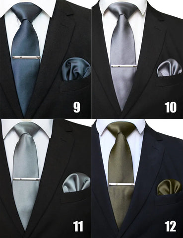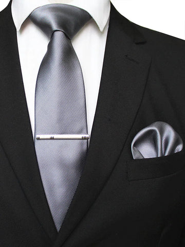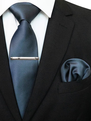 EASTEPIC 8 cm Classic Grey Twill Ties for Men in Business Suits Necktie Set Clip Handkerchief Men's Accessory Wedding Party