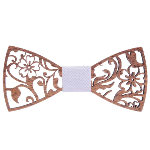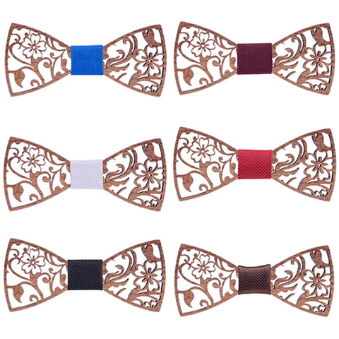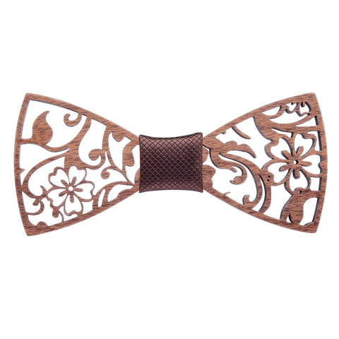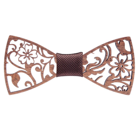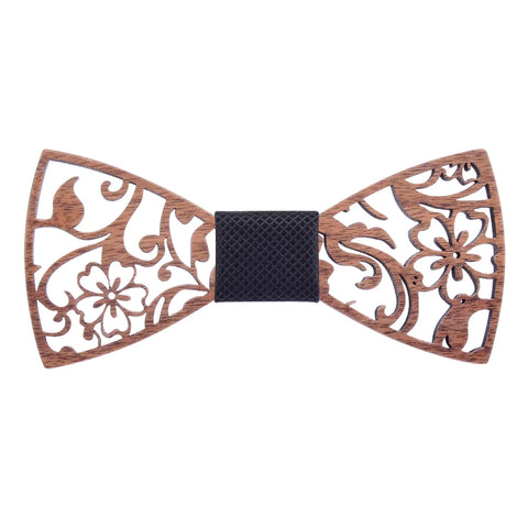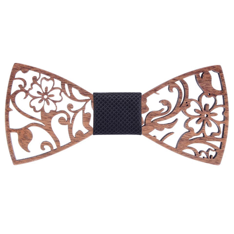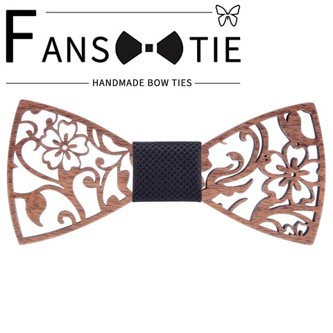 Fashion Novelty Walnut Wooden Bow Tie Mens Fashion Floral Hollow Carved Wood Bowtie Suit Wedding Party Handmade Cravat Neck Ties