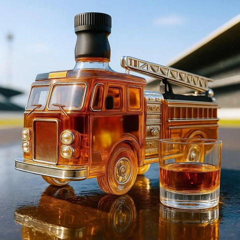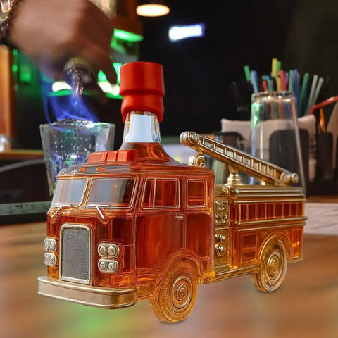 Fires Truck Whisky Decanter 354ml High Borosilicate Glass Liquor Dispenser for Bourbon Collector's Gift for Firefighters & Whisk