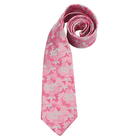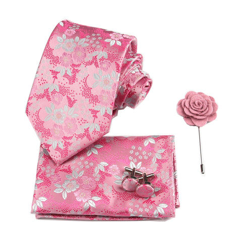 Floral Pink Silk Ties Set For Men Wedding Party Neck Tie Set Handkerchief Brooch Cufflinks Men Accessories High Quality Gravata