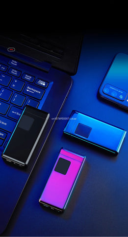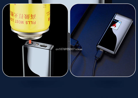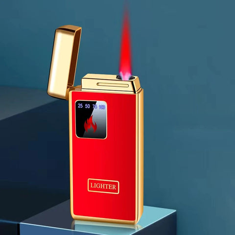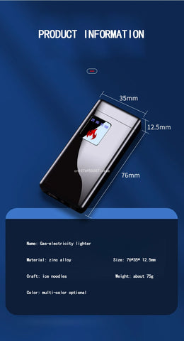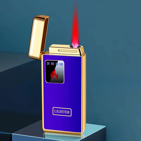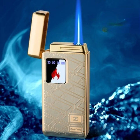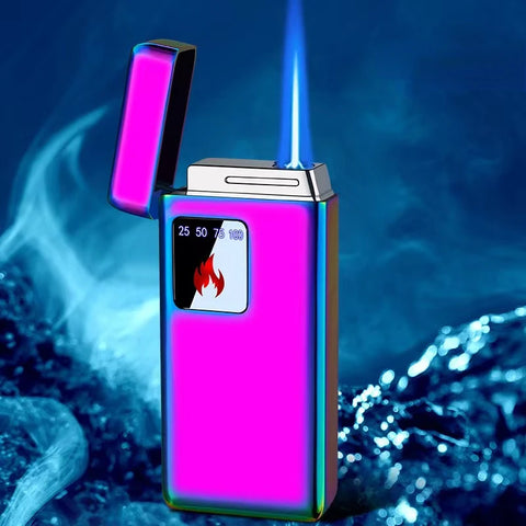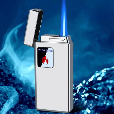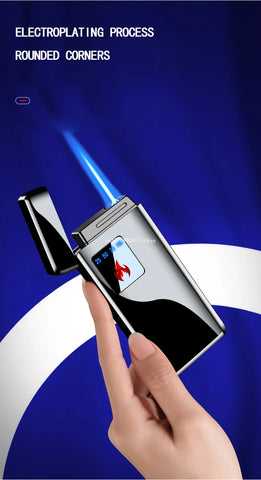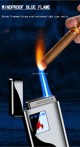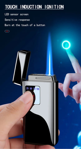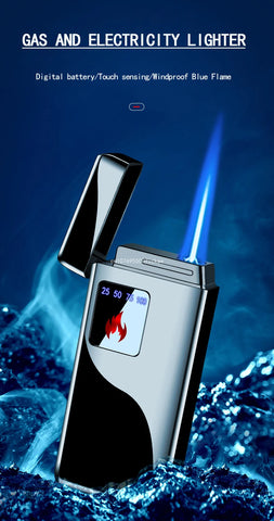 Gas and Electricity Integrated Blue Flame Ice-plated Digital Display Power Supply Touch Sensor Windproof Jet Cigar Torch Lighter
