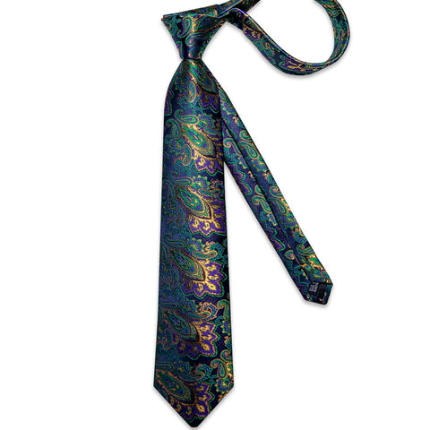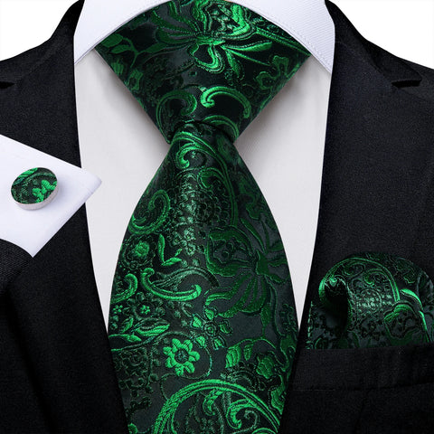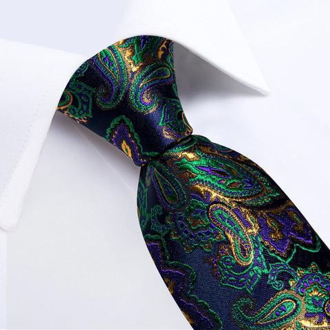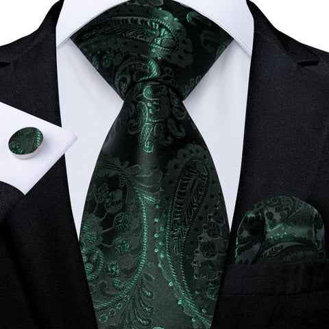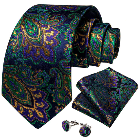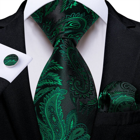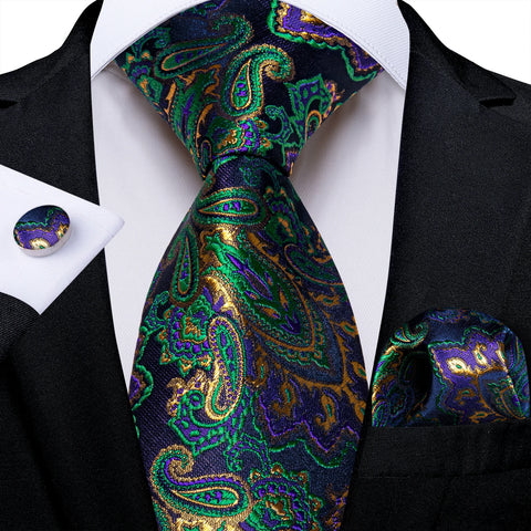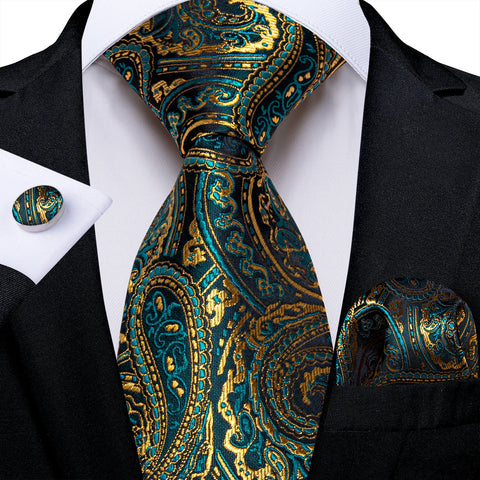 Green Golden Paisley Ties for Men Luxury Wedding Party Prom Men's Suits Accessories Necktie Pocket Suqare Cufflinks Husband Gift