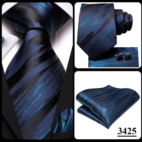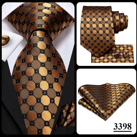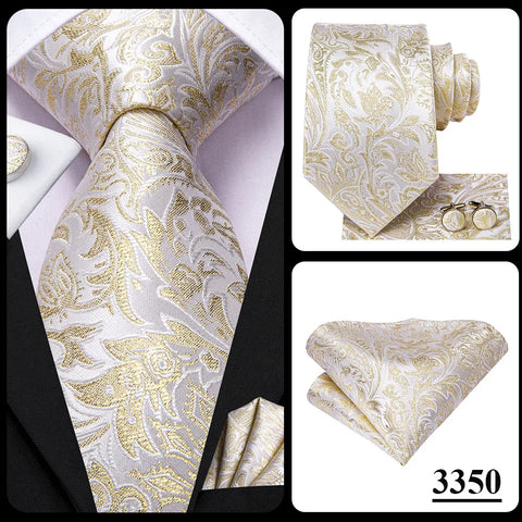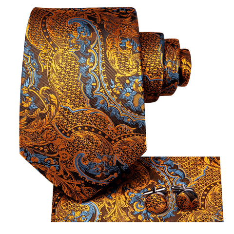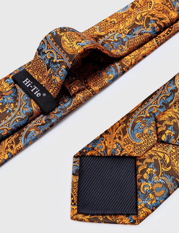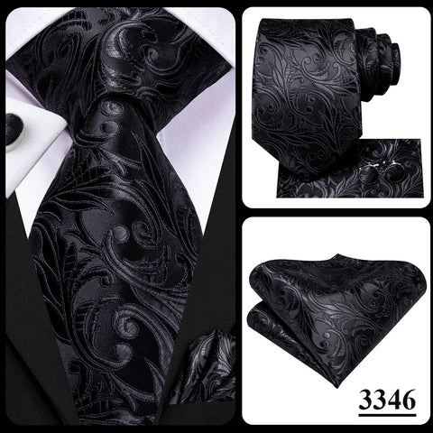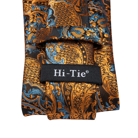 Hi-Tie 100% Silk Luxury Mens Ties Floral Black Gold Ties Paisley NeckTie Pocket Square Cufflinks Set Men's Wedding Party Tie