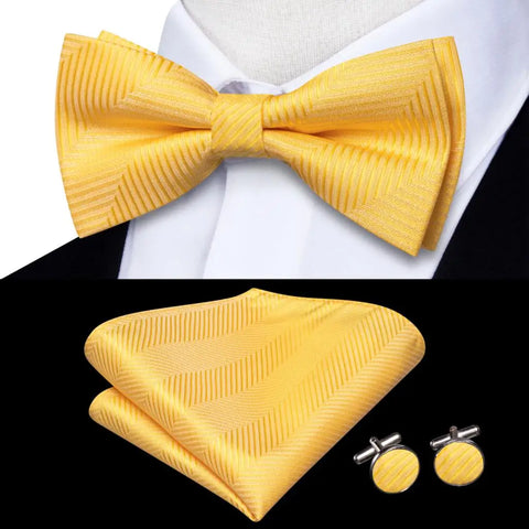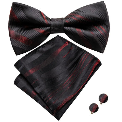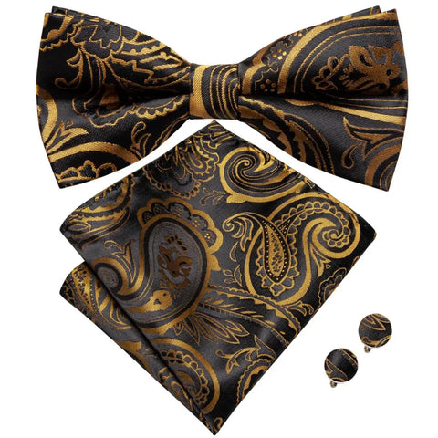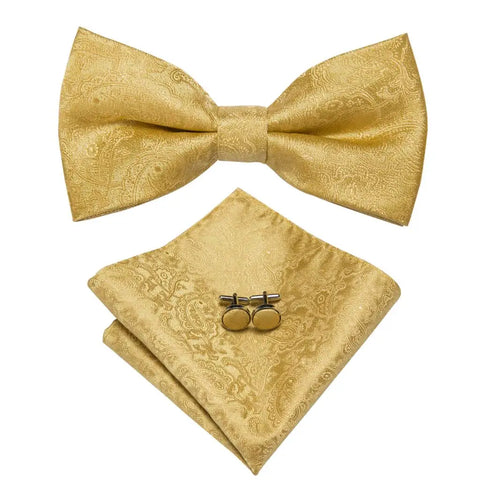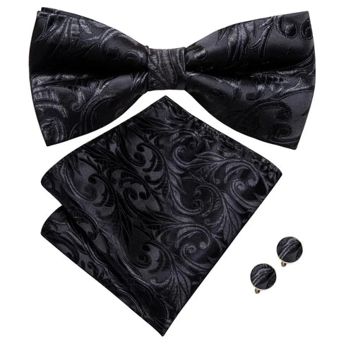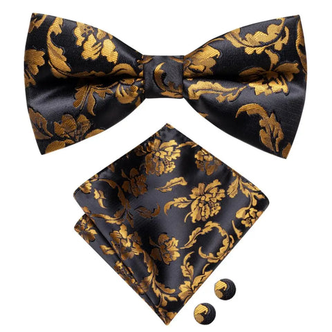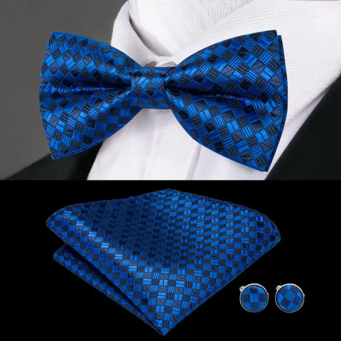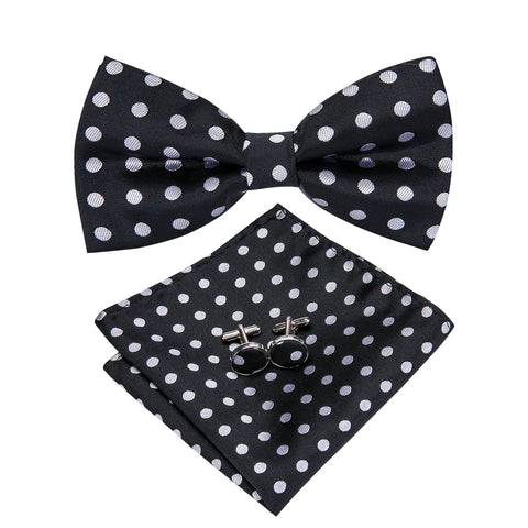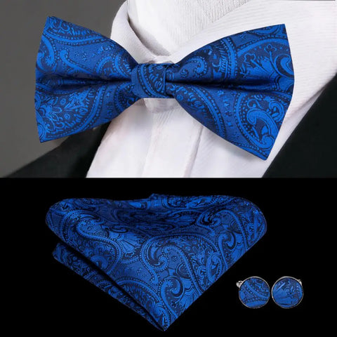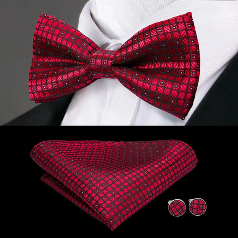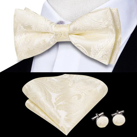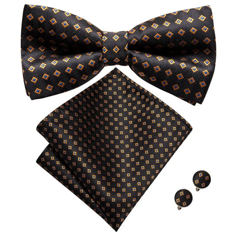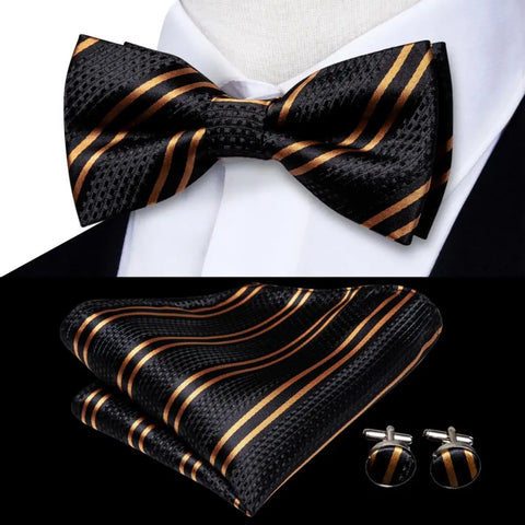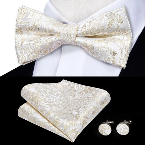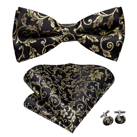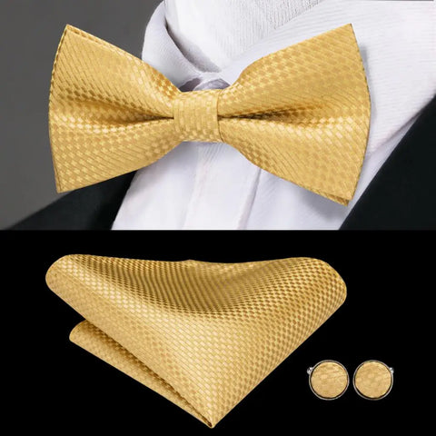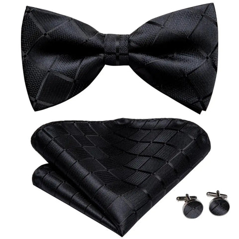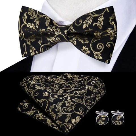 Hi-Tie Brand Silk Mens Bowtie Hanky Cufflinks Set Black Red Blue Gold Green White Pre-tied Butterfly Knot Bow Tie Wedding Work
