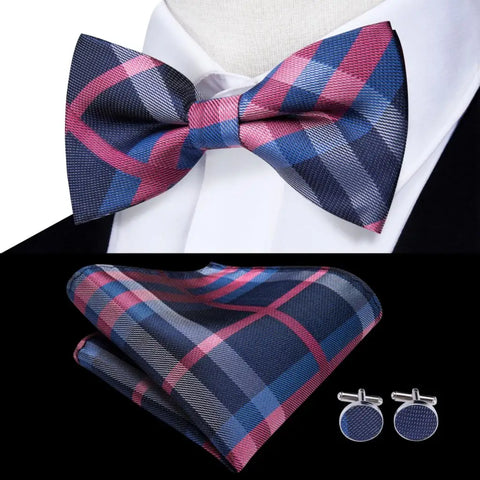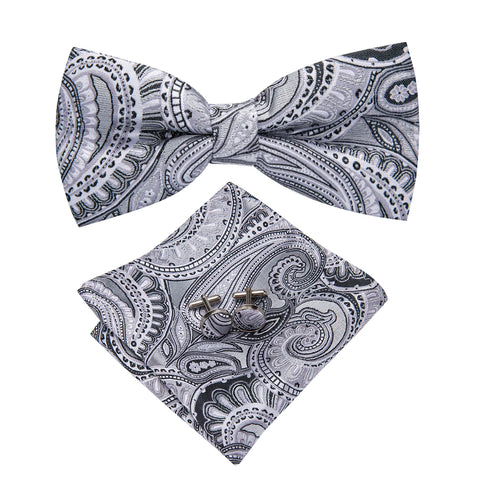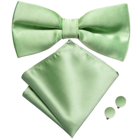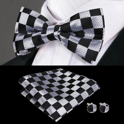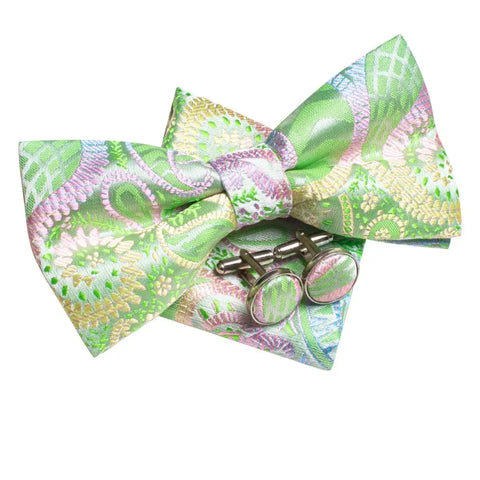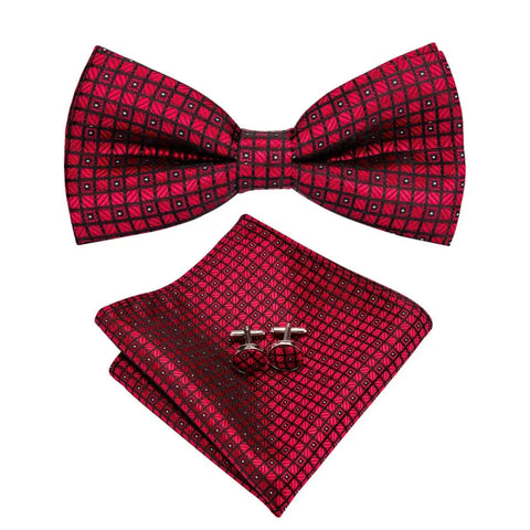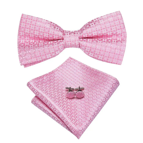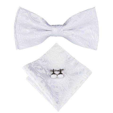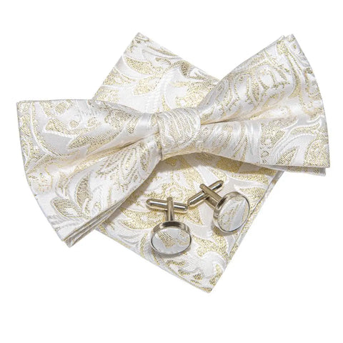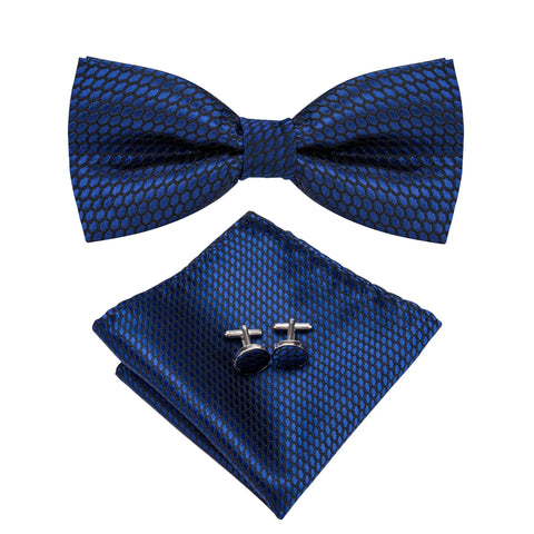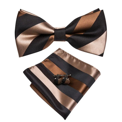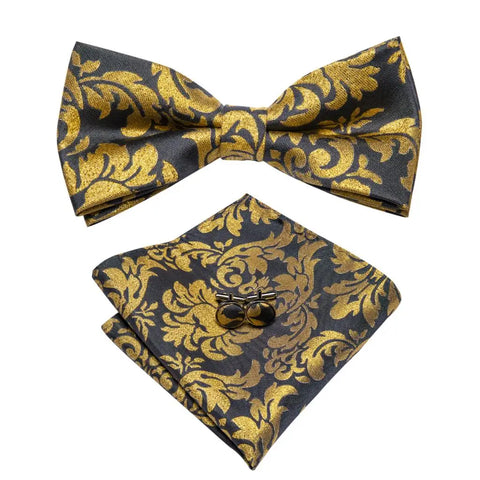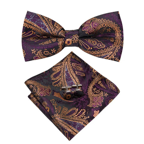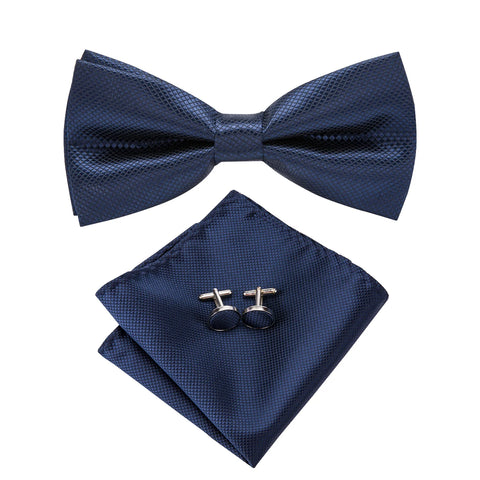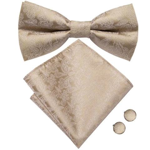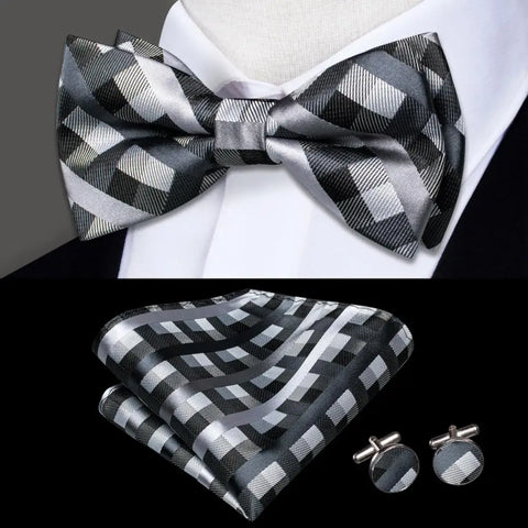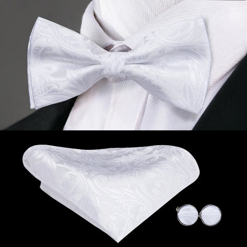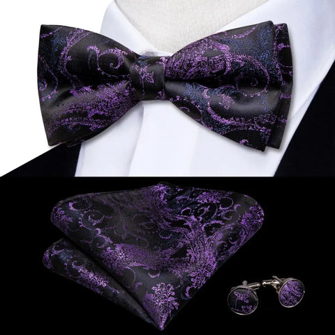 Hi-Tie Brand Silk Mens Bowtie Hanky Cufflinks Set Black Red Blue Gold Green White Pre-tied Butterfly Knot Bow Tie Wedding Work