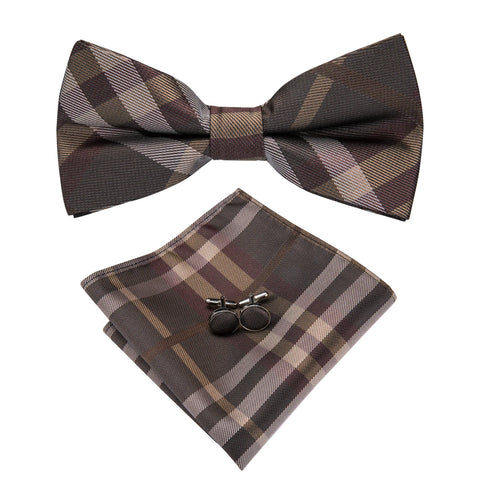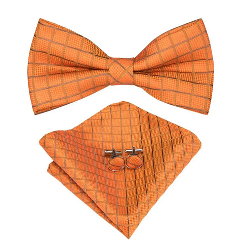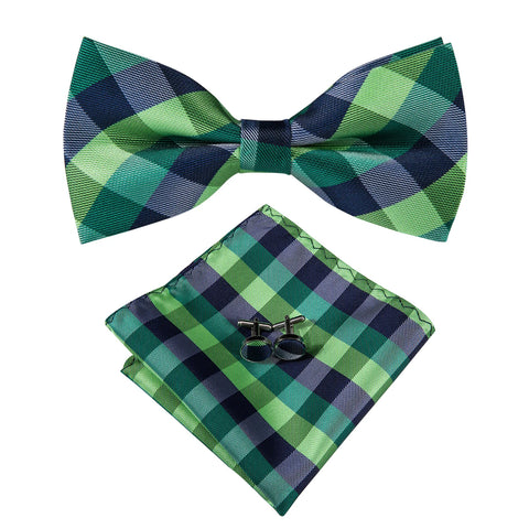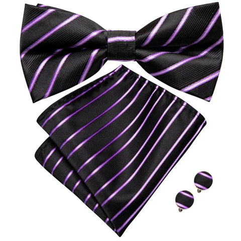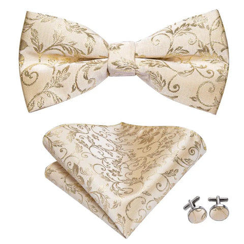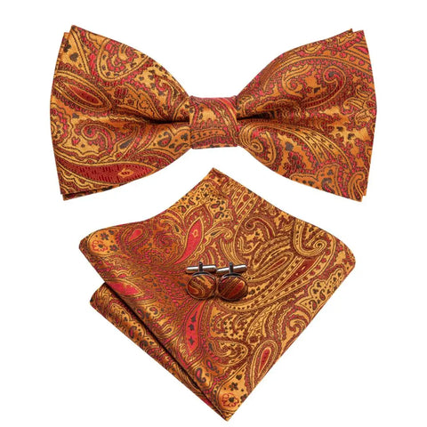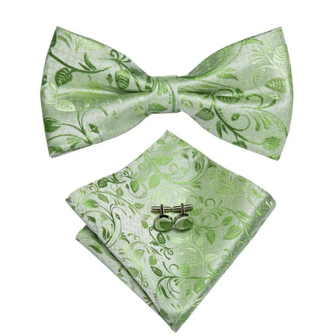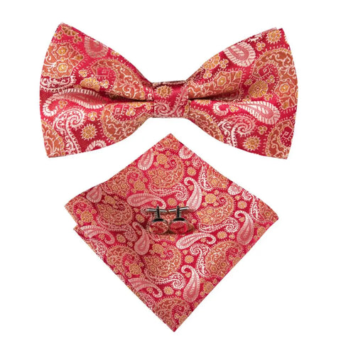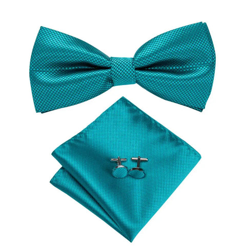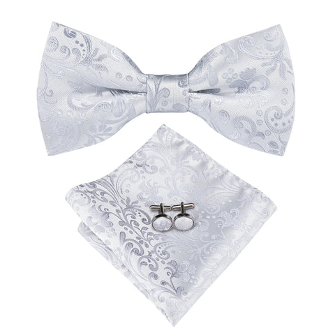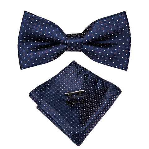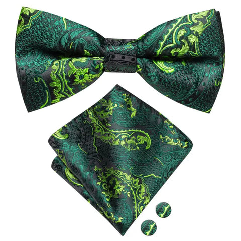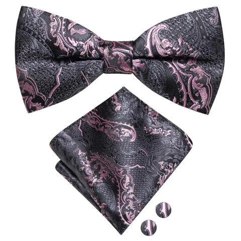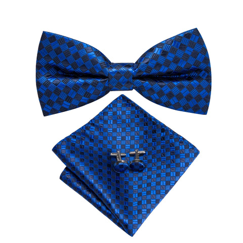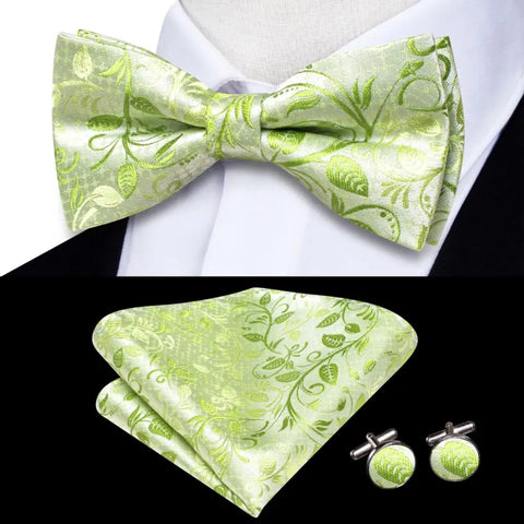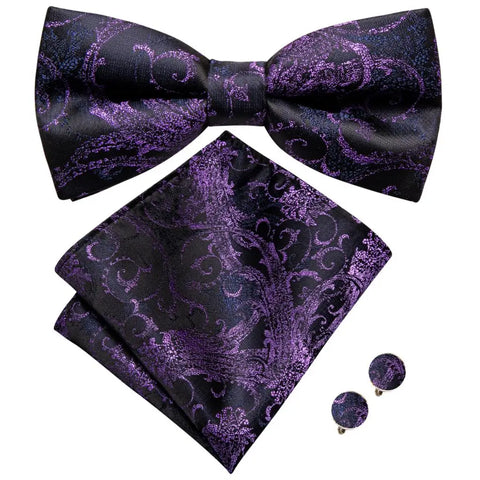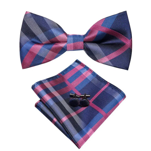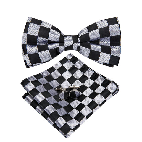 Hi-Tie Brand Silk Mens Bowtie Hanky Cufflinks Set Black Red Blue Gold Green White Pre-tied Butterfly Knot Bow Tie Wedding Work