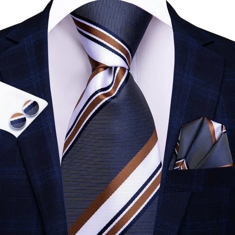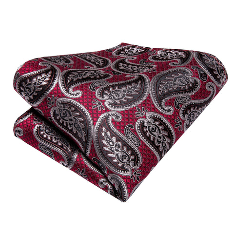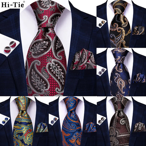 Hi-Tie Burgundy Brown Black Striped Paisley Silk Wedding Nicktie For Men Hanky Cufflink Gift Tie Set Business Party Dropshipping
