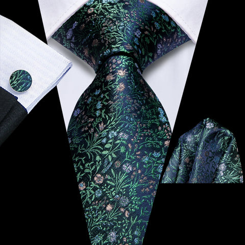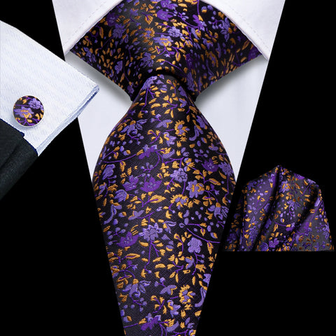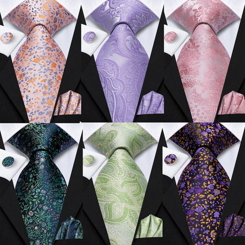 Hi-Tie Mens Pink Purple Green Floral Wedding Necktie Handkerchief Cufflinks for Tuxedo Accessory Classic Luxury Tie Man Gift