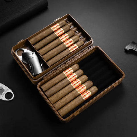 Humidor Cigar Box Portable Hand-Carry Flip Lid Convenient Creative Retro with External Hygrometer Smoking Accessories CA-24DAB