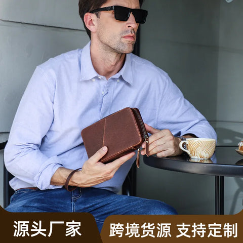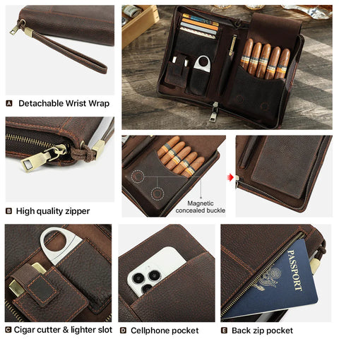 Leather Humidor Pack of 5 with Wrist Zipper Multifunctional Travel Convenient Cigar Case Leather Case