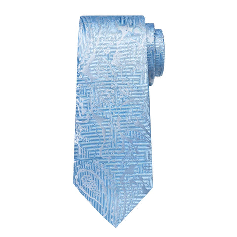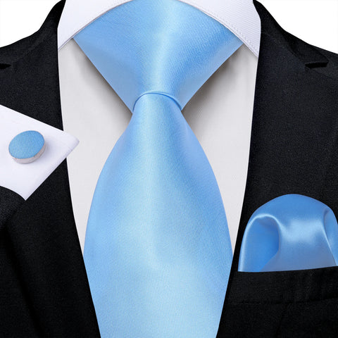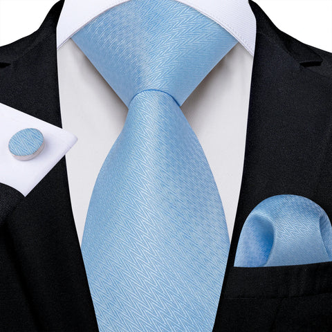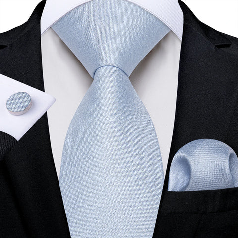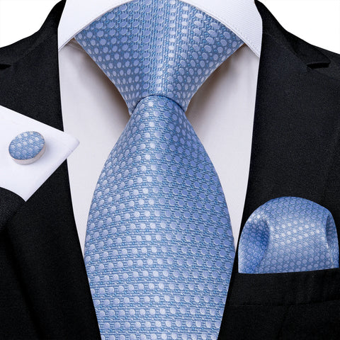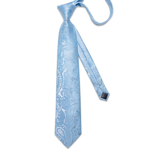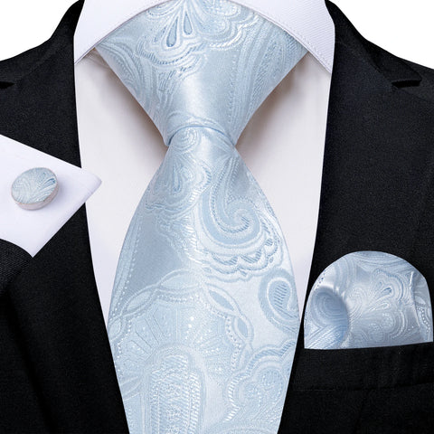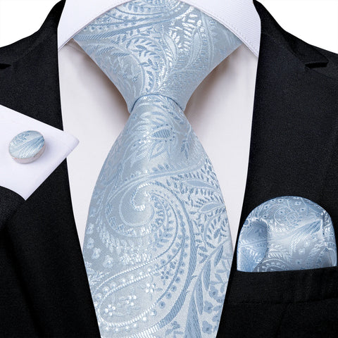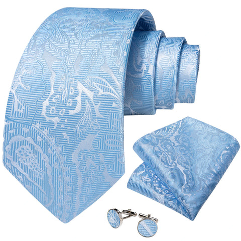 Light Blue Men's Tie Set Handkerchief Cufflinks Solid Paisley Floral Wedding Party Formal Groom Suits Accessories Gift Husband