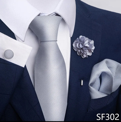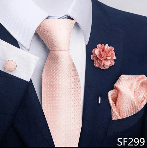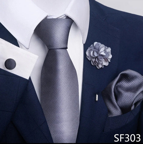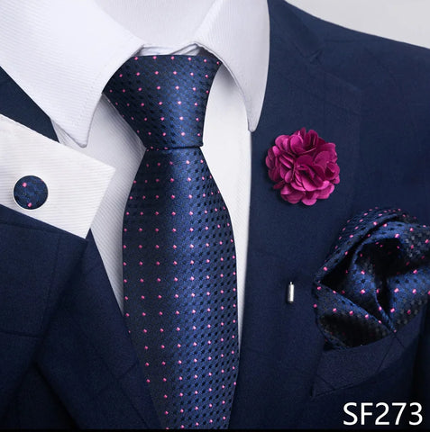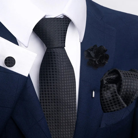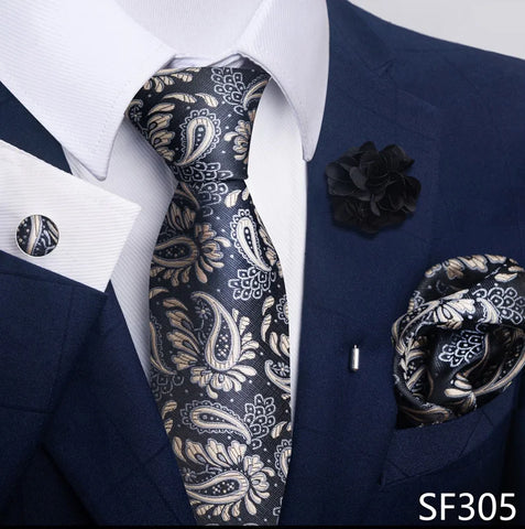 Luxury Mens Ties Floral Black Gold Ties Paisley NeckTie Pocket Square Cufflinks Brooch Set Men's Wedding Party Tie