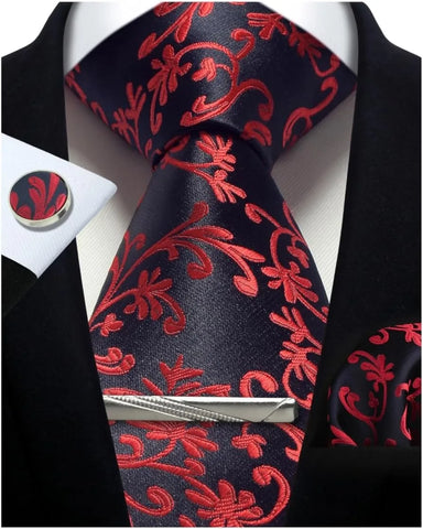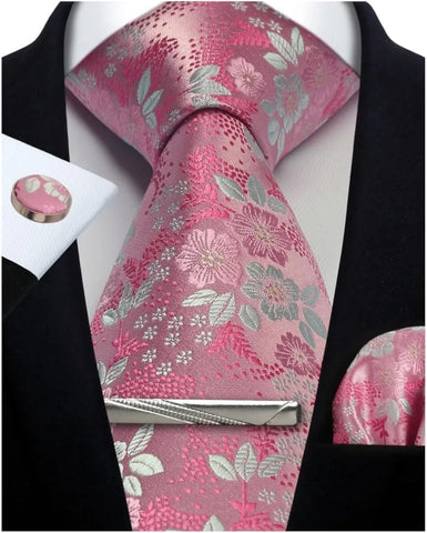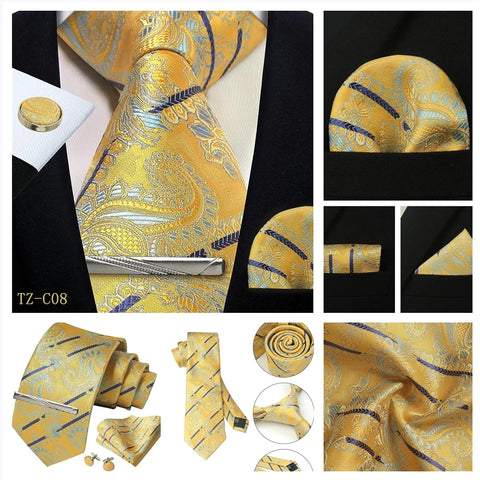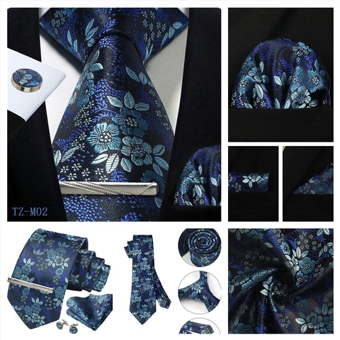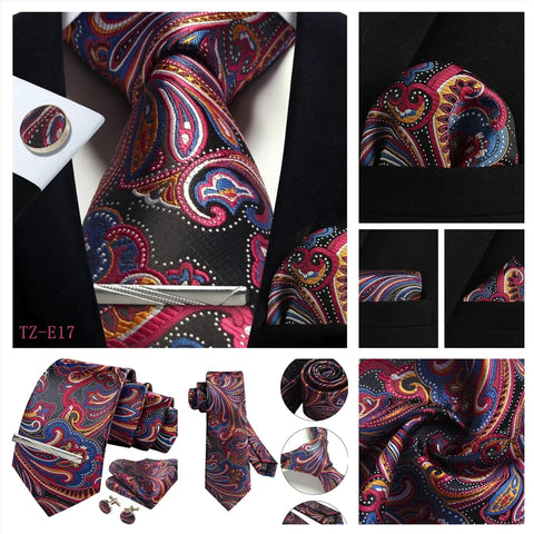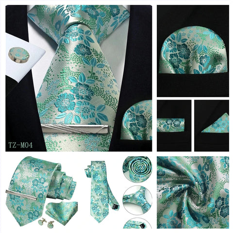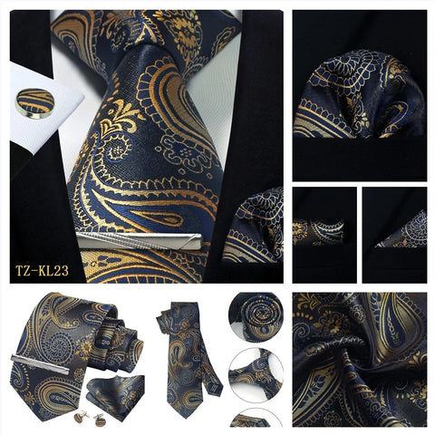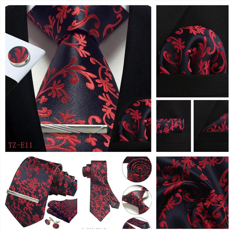 Tie set: Men tie & Pocket square & Cufflinks &Tie Clip