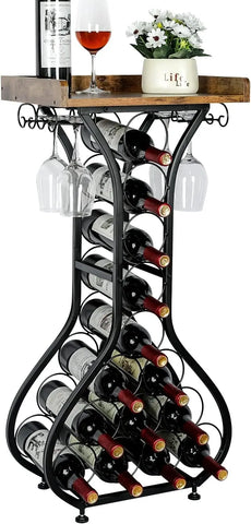 Mini bar table, wine cabinet with glass shelf, wooden tabletop, home bar, wine storage in kitchen and living room