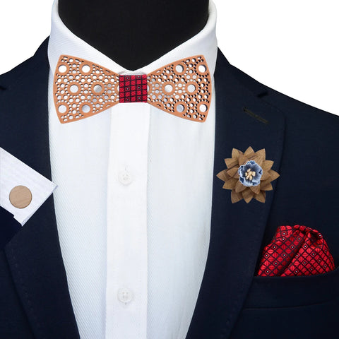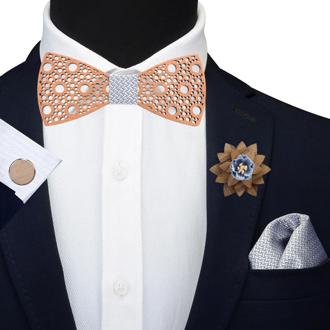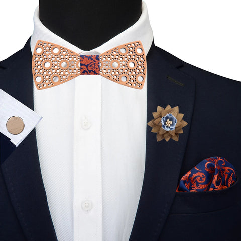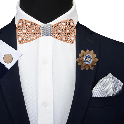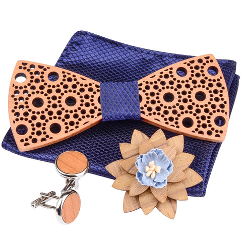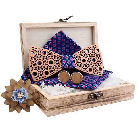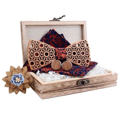 Include: 1*Wood bowtie+1*Hanky+2*Cufflinks+1*Corsage
