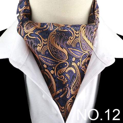 New Design Jacquard Paisley Cashew Cravat Formal Ascot Scrunch Self British Gentleman Scarf Polyester Tie Suit Accessories Gifts