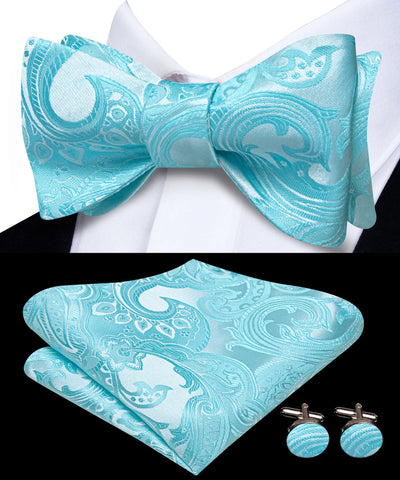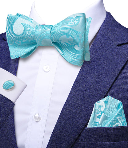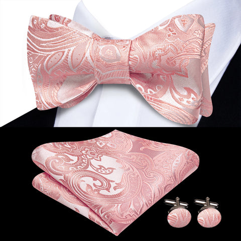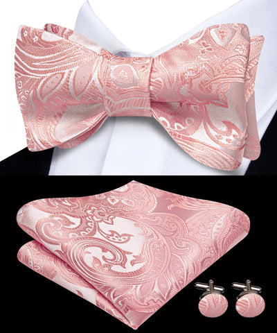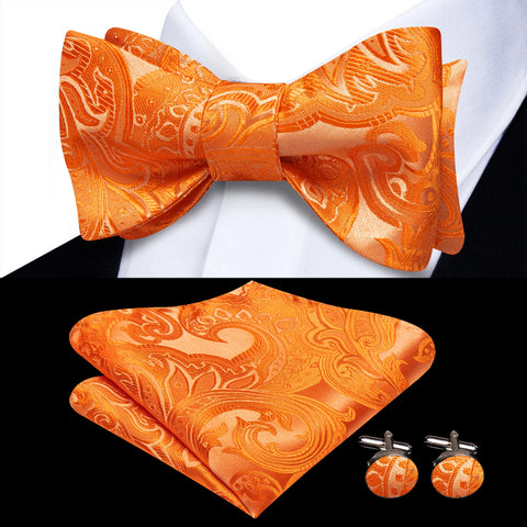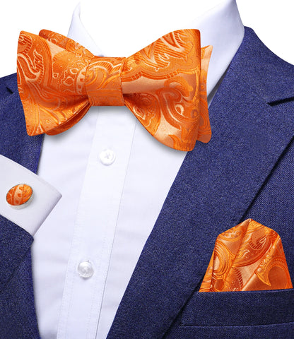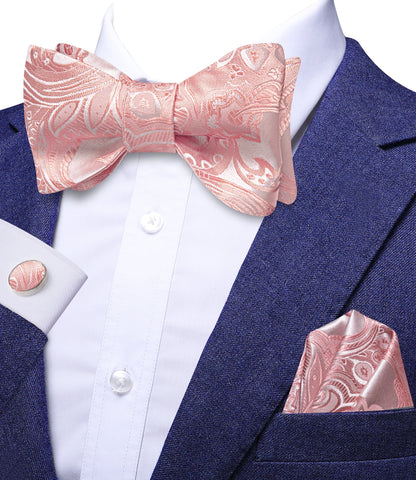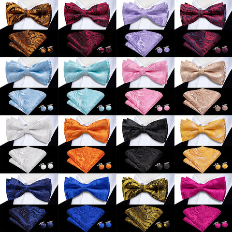 Pink Orange Sky Blue Hi-Tie Mens Bow Tie Pocket Square Cufflinks Set Self-tied Butterfly Knot Bowtie for Wedding Business Gift