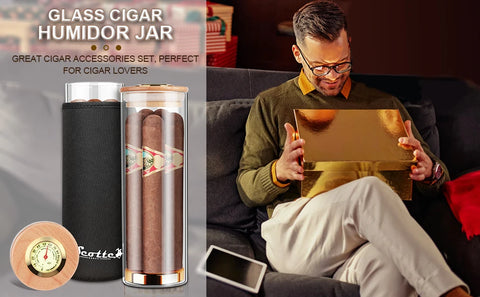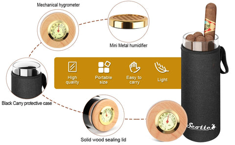 Scotte-Cigar Case Humidor Gift Box, Humidor, Humidor, Humidor, Hygrometer, humidifier Travel Cigar Tube for 4 to 5 Cigars