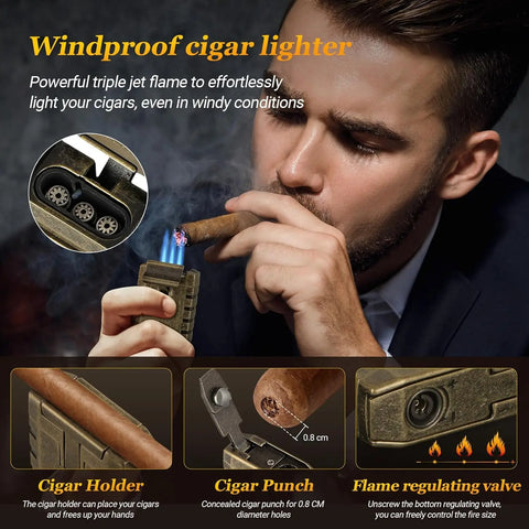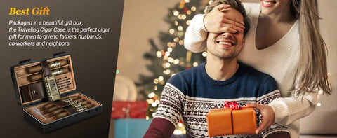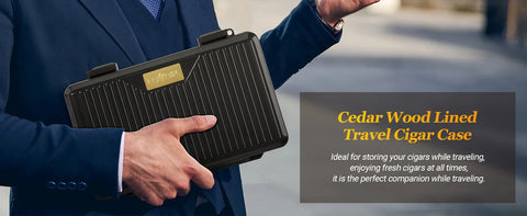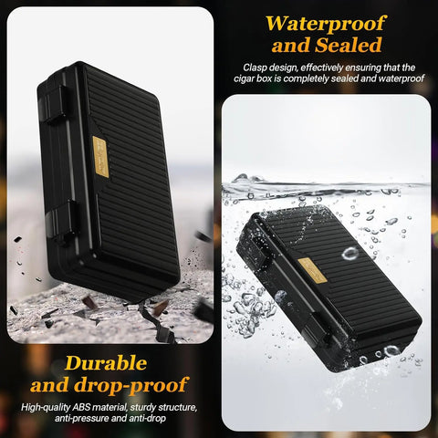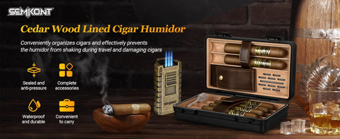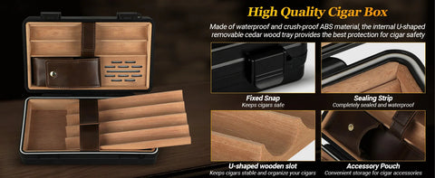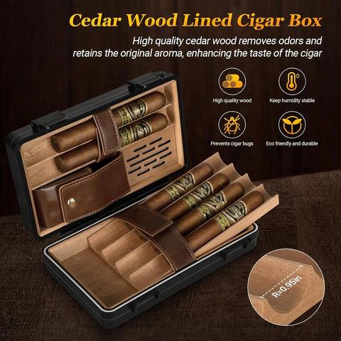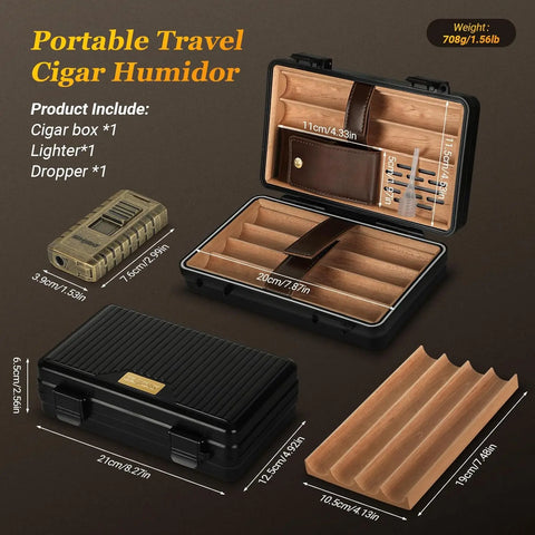 Travel Cigar Humidor Cedar Wood Lined,Waterproof Anti Pressure Sealed Cigar Storage Case,With Humidifier and Cigar Lighter Set
