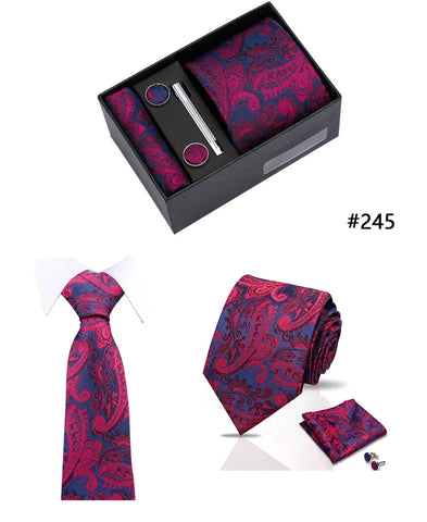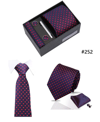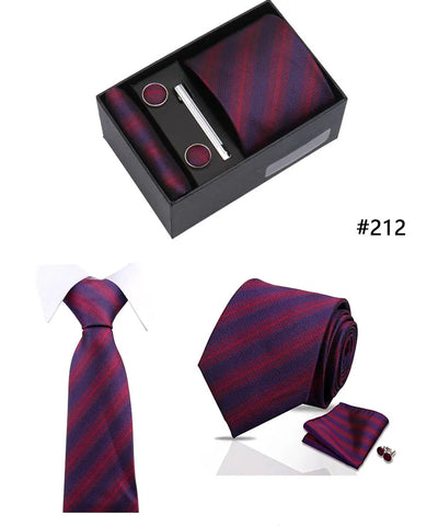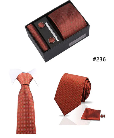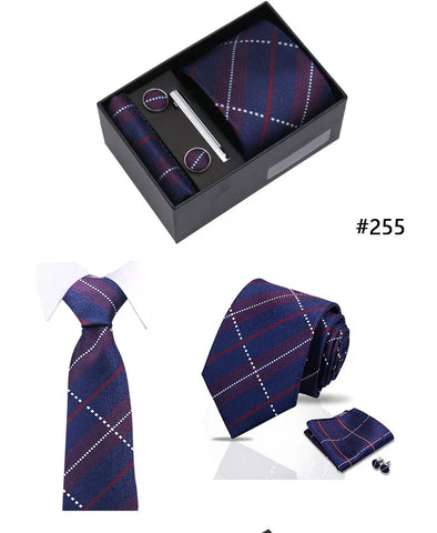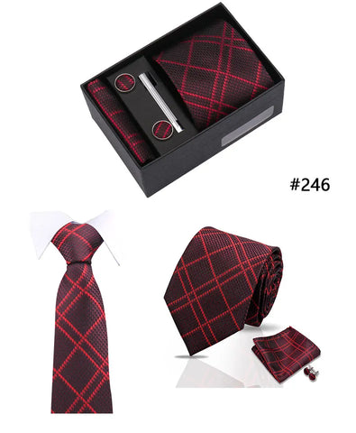 Full name: Tie For Men Classic Plaid Handkerchiefs Red Necktie Cufflinks For Men Blouse Business Wedding Accessories Women Collar Man Gift